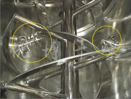 2、平穩的混合過程降低了對易碎物料的破壞,加裝飛刀結構亦起破碎作用。