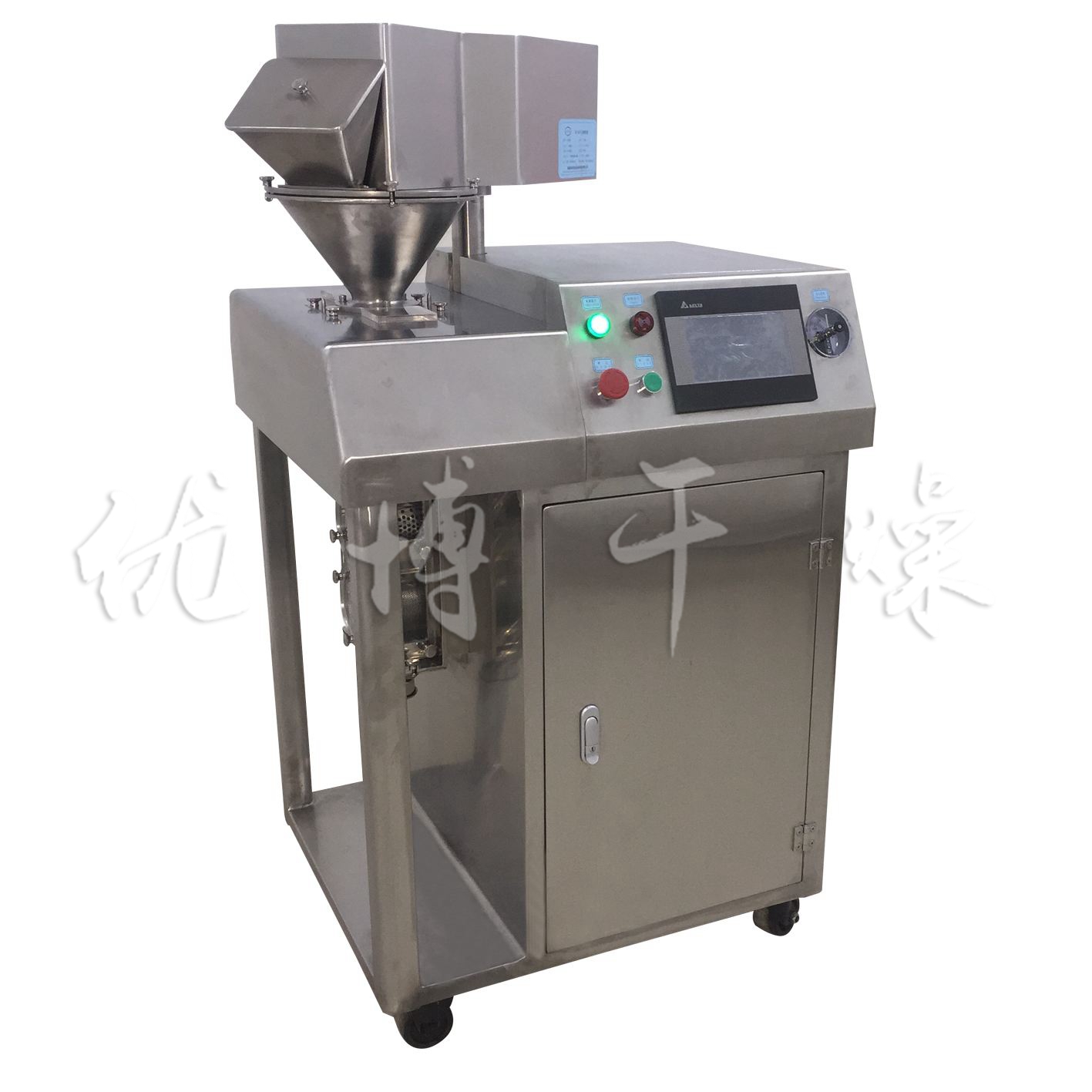 簡介:特點:● 無需任何添加劑,干粉直接制粒。● 顆粒強度可以調整,通過調節壓輥的壓力控制成品強度。● 循環操作,實現連續生產。● 成品產量高,單機產量可達2000kg/h以上(堆積密度1.5×103kg/m3)設備流程工藝: 工作原理: 粉狀物料由振動給料斗經橫向螺旋送料器定量,均勻地加人軋片主料斗,使軋片主料斗內保持恒定的料粒,然后由軋片主料內的縱向錐螺旋對粉料進行預壓縮并輸送到兩只壓輥的弧形槽口,兩只壓輥表面均勻分布形狀相同···