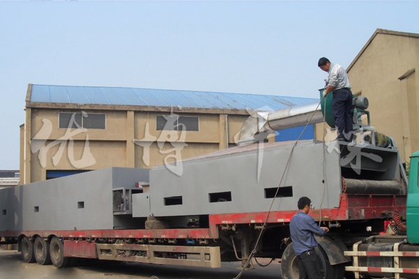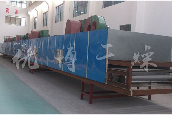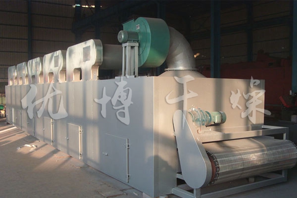 物料由加料器均勻地鋪在網帶上,網帶一般采用12-60目不銹鋼絲網,由傳動裝置拖動在干燥機內移動。干燥機由若干單元組成,每一單元熱風獨立循環,部分尾氣由專門排濕風機排出,廢氣由調節閥控制,熱氣由下往上或由上往下穿過鋪滿物料的網帶完成熱量與質量傳遞的進程,帶走物料水份。網帶緩慢移動,運行速度可根據物料溫度自由調節,干燥后的成品連續落入收料器中。上下循環單元根據用戶需要可靈活配備,單元數量亦可根據需要選取。