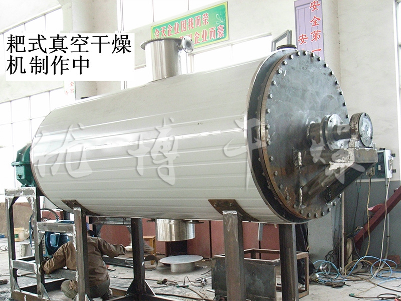 ZB系列真空耙式干燥機是一種新穎臥式間歇式真空干燥設備,濕物料經傳導蒸發,帶有刮板攪拌器不斷清除熱面上的物料,并在容器內推移形成循環流,水份蒸發后由真空泵抽出。本機采用大面積夾層加熱方式,傳熱面大,熱效率高,設置攪拌,使物料在筒內形成連續循環狀態,進一步提高了物料受熱的均勻度,從而可順利進行漿狀、膏狀、糊狀物料干燥。