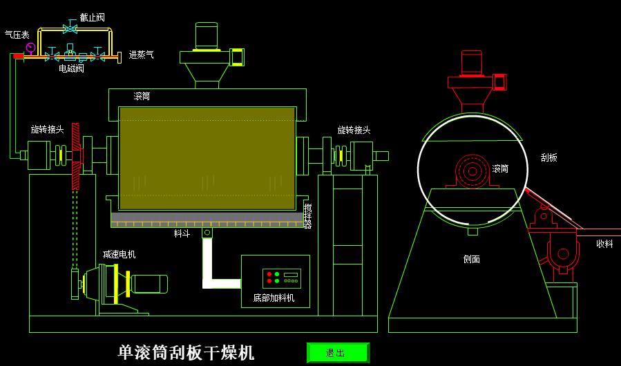 3、啟動電機,主滾筒動運轉平穩,溫度升高后加入物料后調整電機轉速及物料在滾筒上薄膜均勻程度來控制物料終含水量。